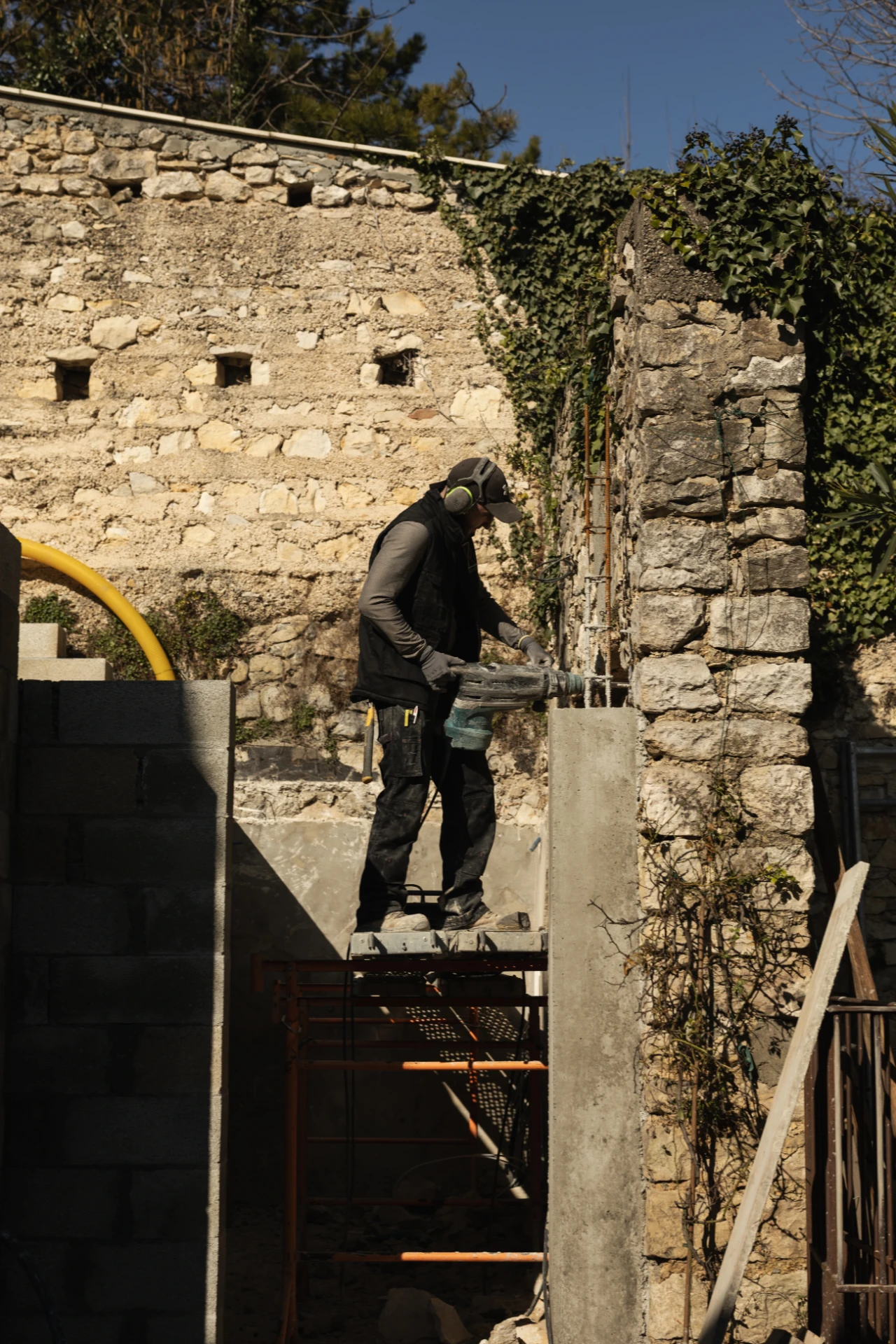 L’une des principales contraintes de ce chantier résidait dans l’accès particulièrement restreint, avec un passage limité à 1,20 m de large, nécessitant une organisation logistique rigoureuse.
