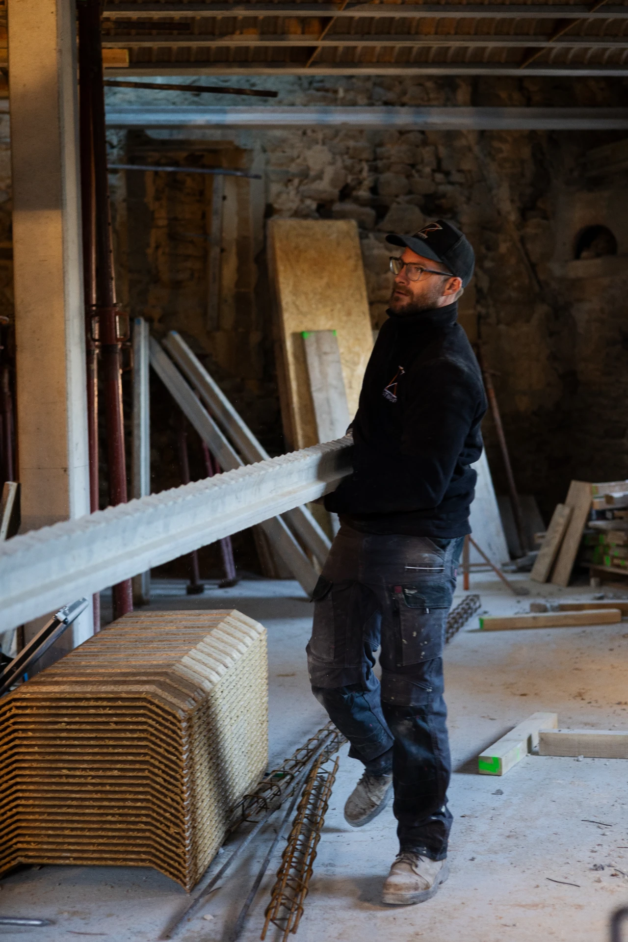 – La réalisation d’un plancher en R+1 avec dalle poutrelles-hourdis, garantissant solidité et pérennité de la structure